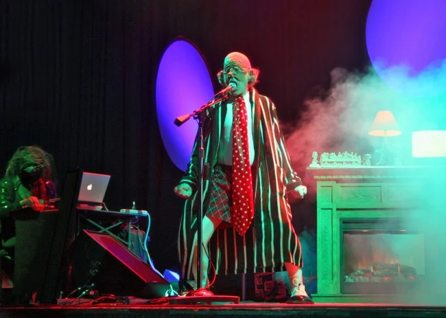 What did you do on Saturday night? I, for one, watched three grown men tell ghost stories incognito; two of them faceless in red-sequined tailcoats and one wrinkly old man in a bathrobe, boxer shorts and clown shoes. Rising from the haze of the onstage fog machine came a cooing (but hardly soothing) lullaby of “Love is like a little lamb, looking for a hunk of ham.” Yes, The Residents were in town.